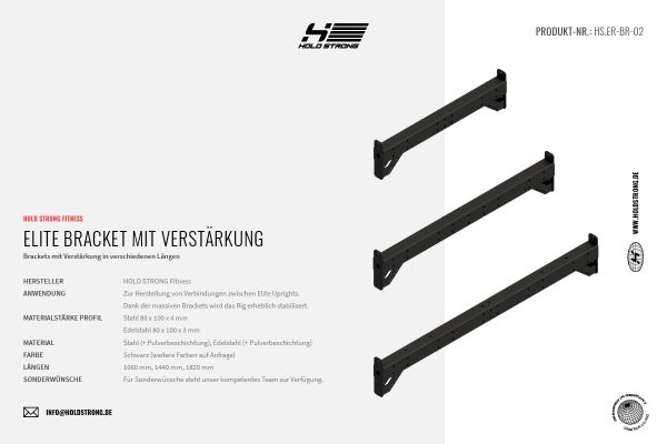 | Anwendung | Zur Herstellung von Verbindungen zwischen Elite Uprights. Dank der massiven Brackets und der Stützen wird das Rig erheblich stabilisert. |