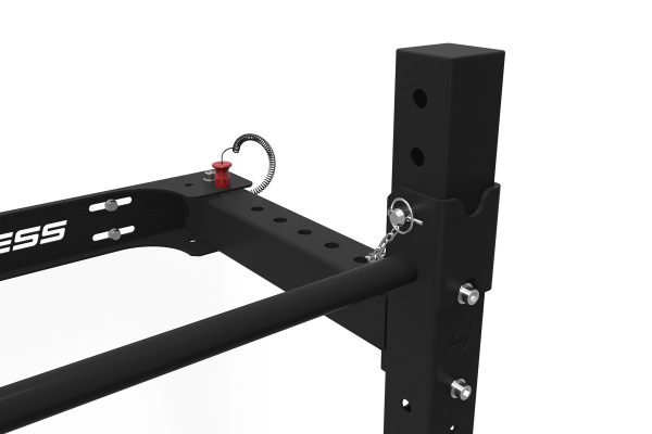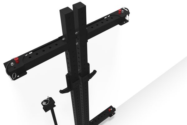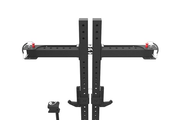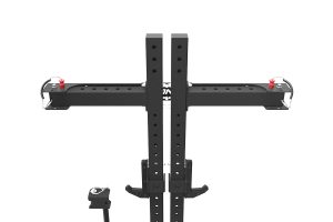 Das Komplett-System wird standardmäßig mit zwei Uprights, Wandverankerungen inklusive Scharnieren, einer integrierten Pull up-Bar und J-Cups für die Hantelablage geliefert. Optional kann das ELITE RIG Zubehör wie Safety Spotter, Core-Trainer oder Dip Bar an das Rack montiert werden.