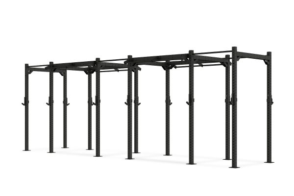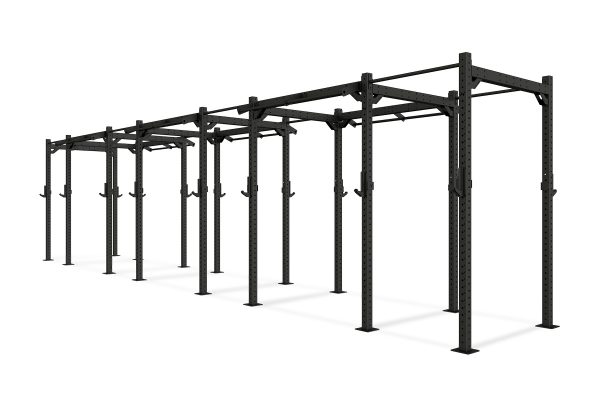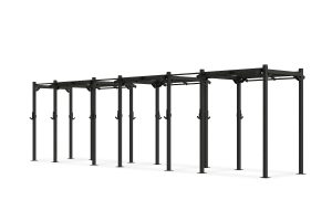 Freistehendes robustes Elite RIG mit Squat Stationen und Pull-up sowie Muscle-Up Stationen. Optional kann ein Storage-System für Bumper Plates, Kettlebells und Kurzhanteln integriert werden.