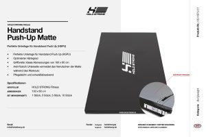 Die HOLD STRONG Handstand Push Up Matte macht Schluss mit ergonomisch ungünstigen Lösungen. Die Matte garantiert einen wettkampfkonformen HSPU ohne jeden Mehraufwand. Einfach aufschwingen und anfangen – perfekt für Training, Wettkampfvorbereitungen und Competition!