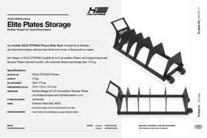 Der Wagen in HOLD STRONG Qualität ist auf Competition Plates und Vollgummigranulat Bumper Plates optimiert worden. Die maximale Belastung beträgt über 170 kg.