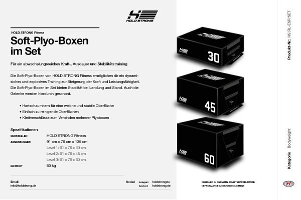 Mit den HOLD STRONG Fitness Soft-Plyo-Boxen kann das plyometrische Training noch variabler gestaltet und noch besser an die Ansprüche der Trainierenden angepasst werden.