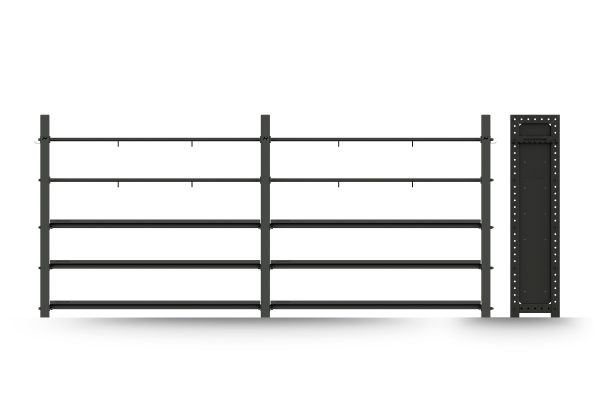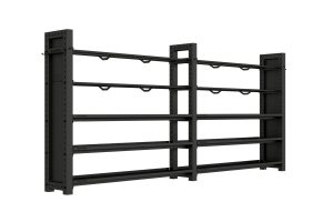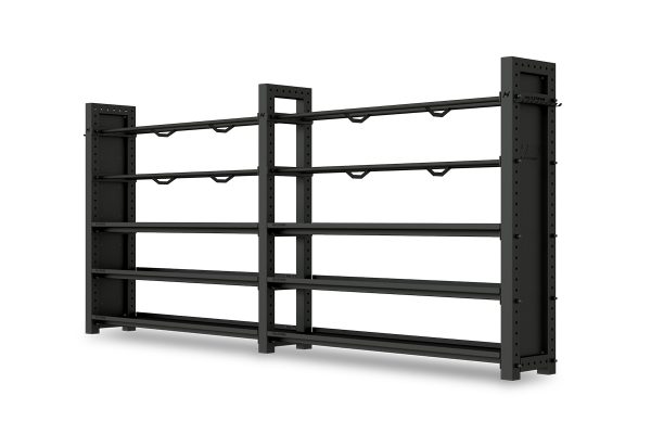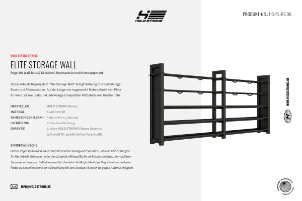 Dieses robuste Regalsystem “The Storage Wall” bringt Ordnung in Crosstrainings-Boxen und Fitnessstudios. Auf der Länge von insgesamt 4 Metern findet sich Platz für mind. 20 Wall-Balls und jede Menge Competition Kettlebells und Kurzhanteln.