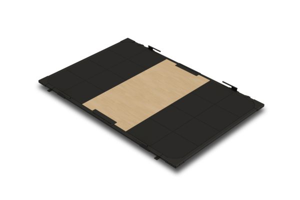 In der Basisversion besteht die Plattform aus einer Metallfassung und ist komplett mit gummiertem CROSSFLOR Fitnessboden ausgelegt, der effektiv vor Lärm, Vibration und Beschädigungen des Untergrunds schützt.
